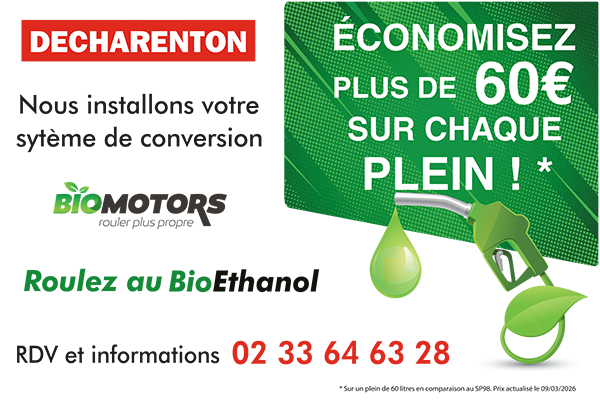 L’atelier Decharenton à Flers réalise l’installation de boîtiers de conversion homologués BIOMOTORS. Cette intervention permet à votre véhicule essence compatible de fonctionner au bioéthanol E85 en toute sécurité et conformément à la réglementation.